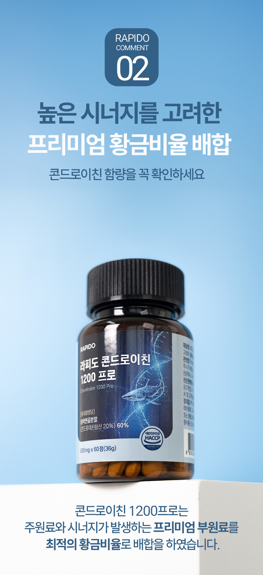 [프리미엄] 라피도 콘드로이친 1200 프로 골드 MBP 함유 상어연골 무릎 관절 연골 건강 보호 영양제