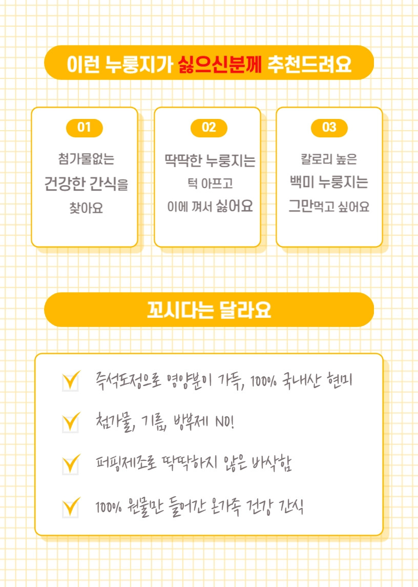 그리고 선물까지, 꼬시다누룽지를 상황과 용도에 맞게 만나보세요