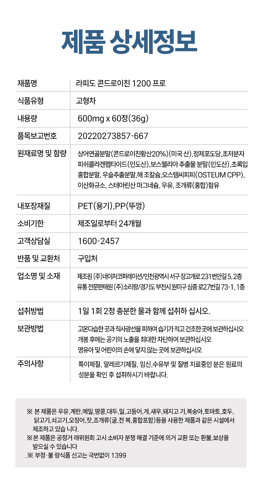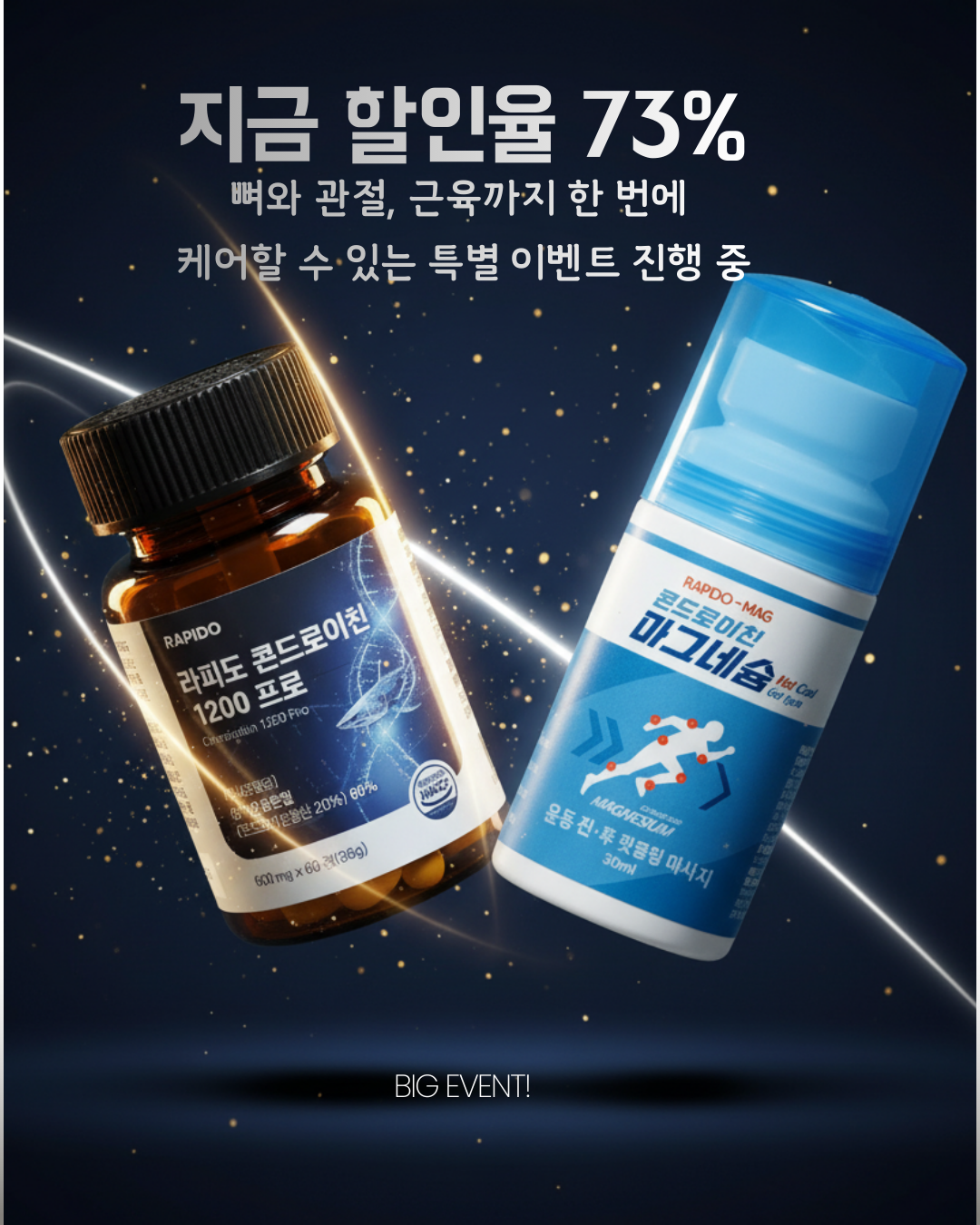 튼튼한 관절과 뼈 건강을 한 번에! 라피도 콘드로이친 1200 프로 60 + 라피도 콘드로이친 마그네슘 35g